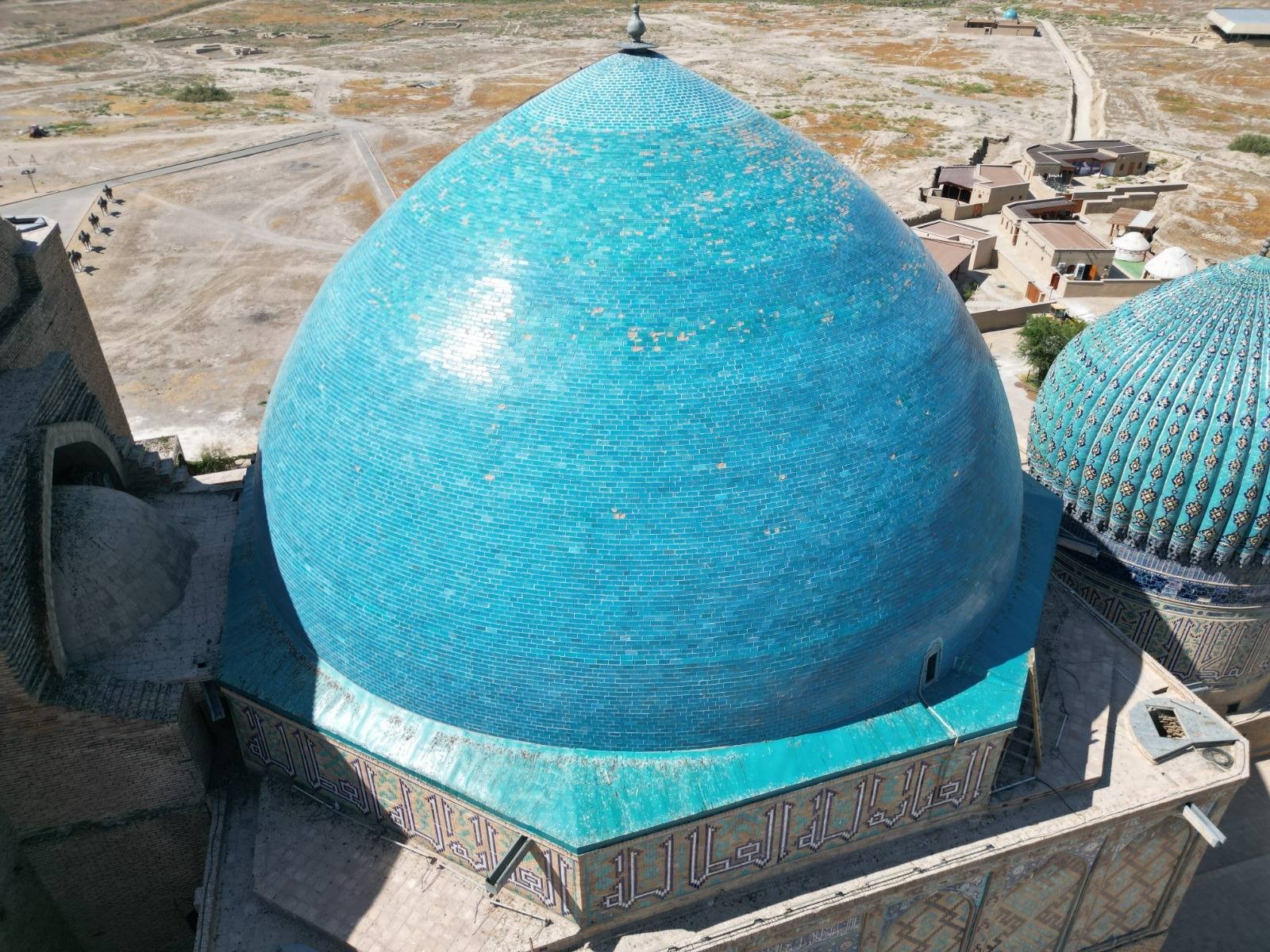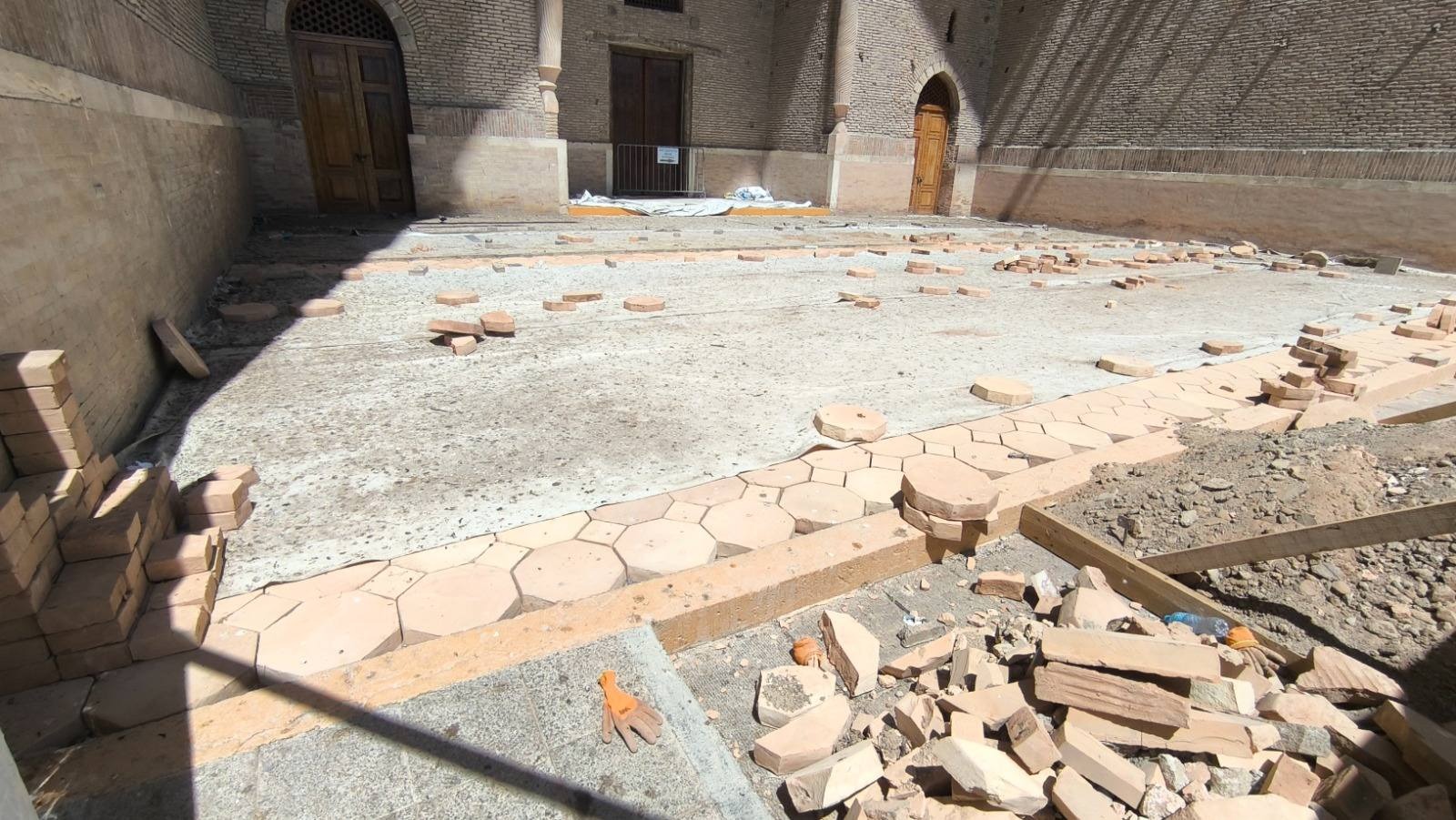 Яссауи кесенесінің кіреберіс порталындағы гранит плиткалар ауыстырылды. 227 м² аумаққа «Қазқайтажаңарту» мекемесінің өндірістік цехында арнайы әзірленген тақта кірпіштер төселді.