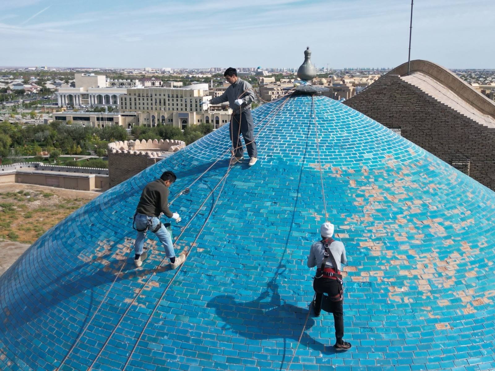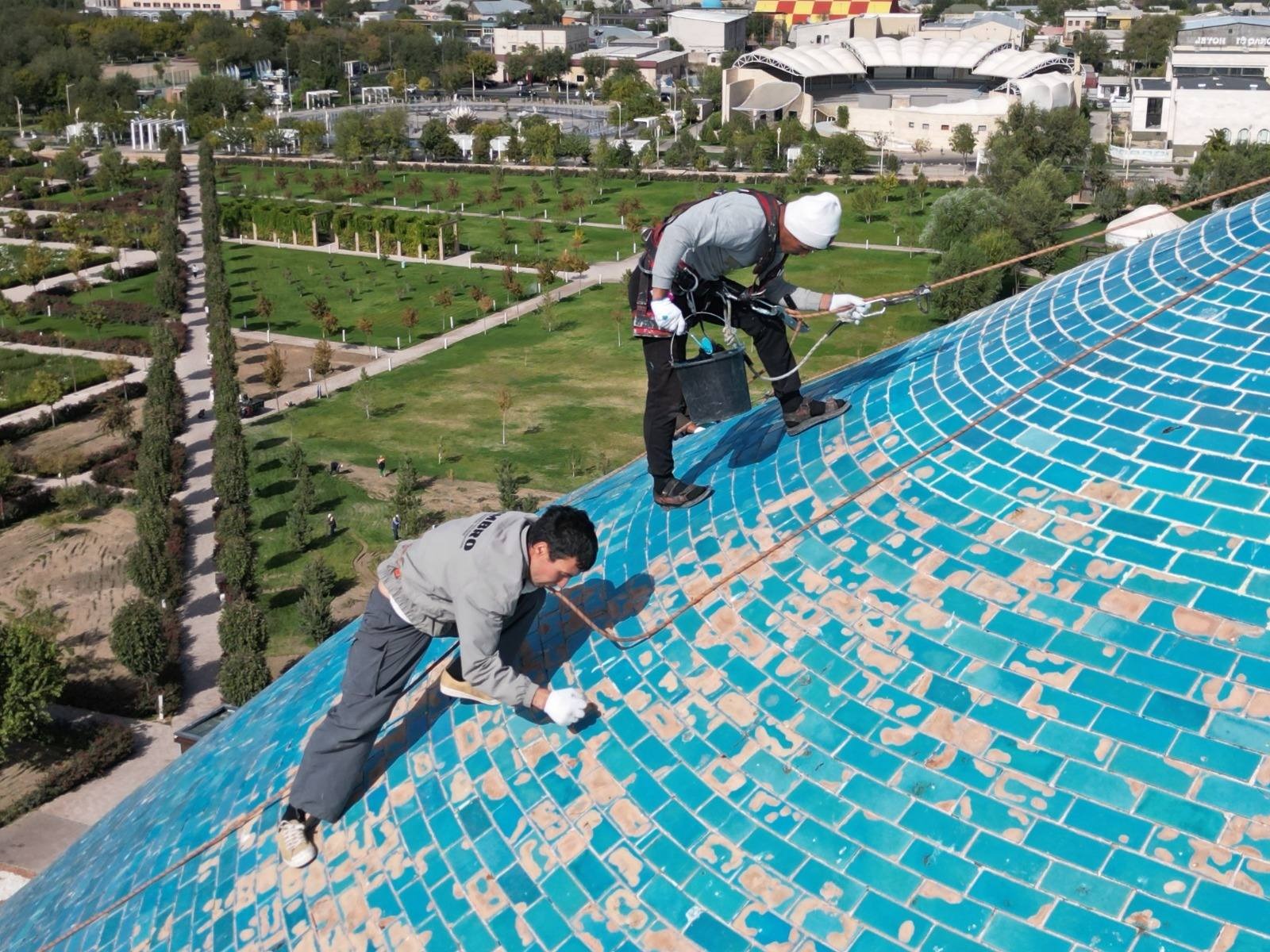 Қ.А. Яссауи кесенесінің күмбезіндегі шытынаған глазурь бөліктері консервацияланды. «Қазқайтажаңарту» мекемесі қорғаныш-декоративті жабындыны лабораториялық сынақтар жүргізу арқылы таңдап алды.